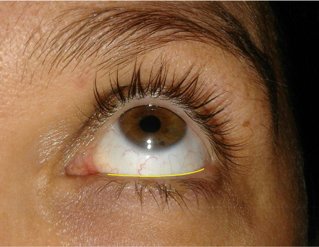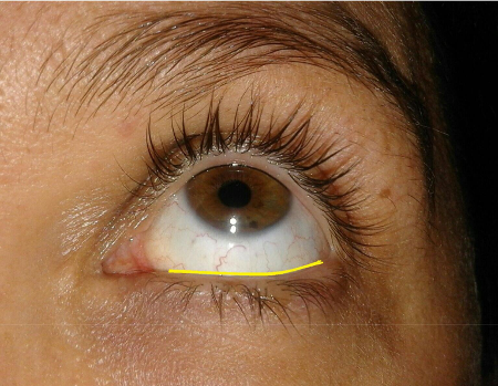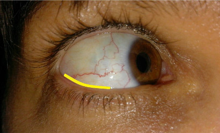 Our third test quantifies the inflammation of the conjunctiva. TFOS has recently highlighted inflammation with dry eye syndrome. It is based on the fact that conjunctival inflammation is always accompanied with conjunctival thickening due to inflows of inflammatory bodies and oedema. It means that instead of smoothly sliding over the eye, the eyelid contact is less than perfect. It is a probable cause of lid wiper epitheliopathy. We noticed that the lower lid tear meniscus gets smaller on upward gaze if the conjunctiva is inflamed and the drop is greater and in proportion with tear hyperosmolarity.